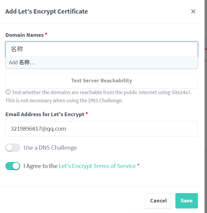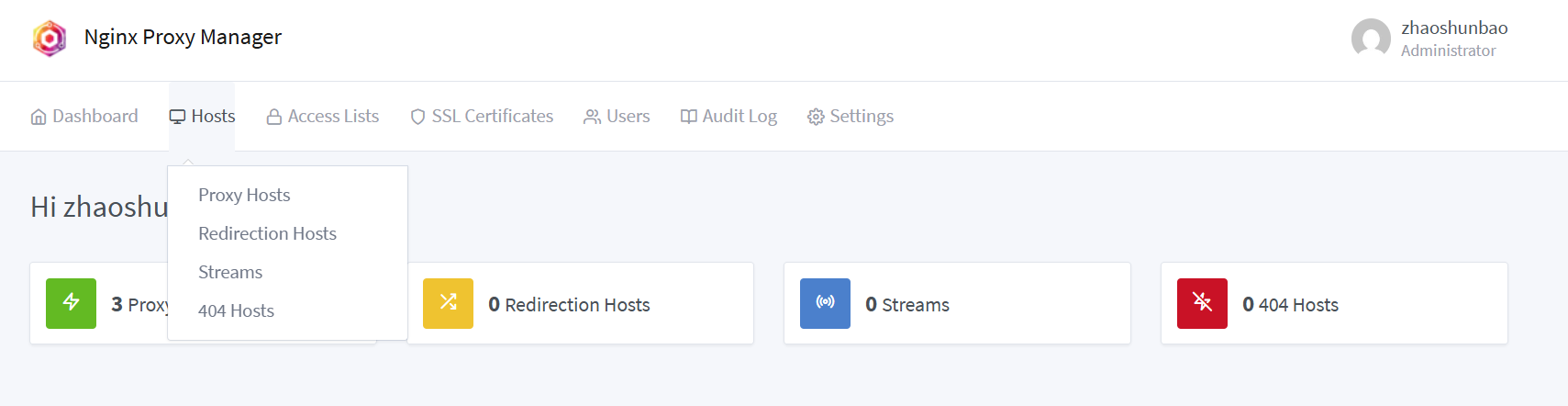 注册进入对应的界面 点击对应的 Hosts 的 Proxy Hosts 再点击 Add Proxy Host