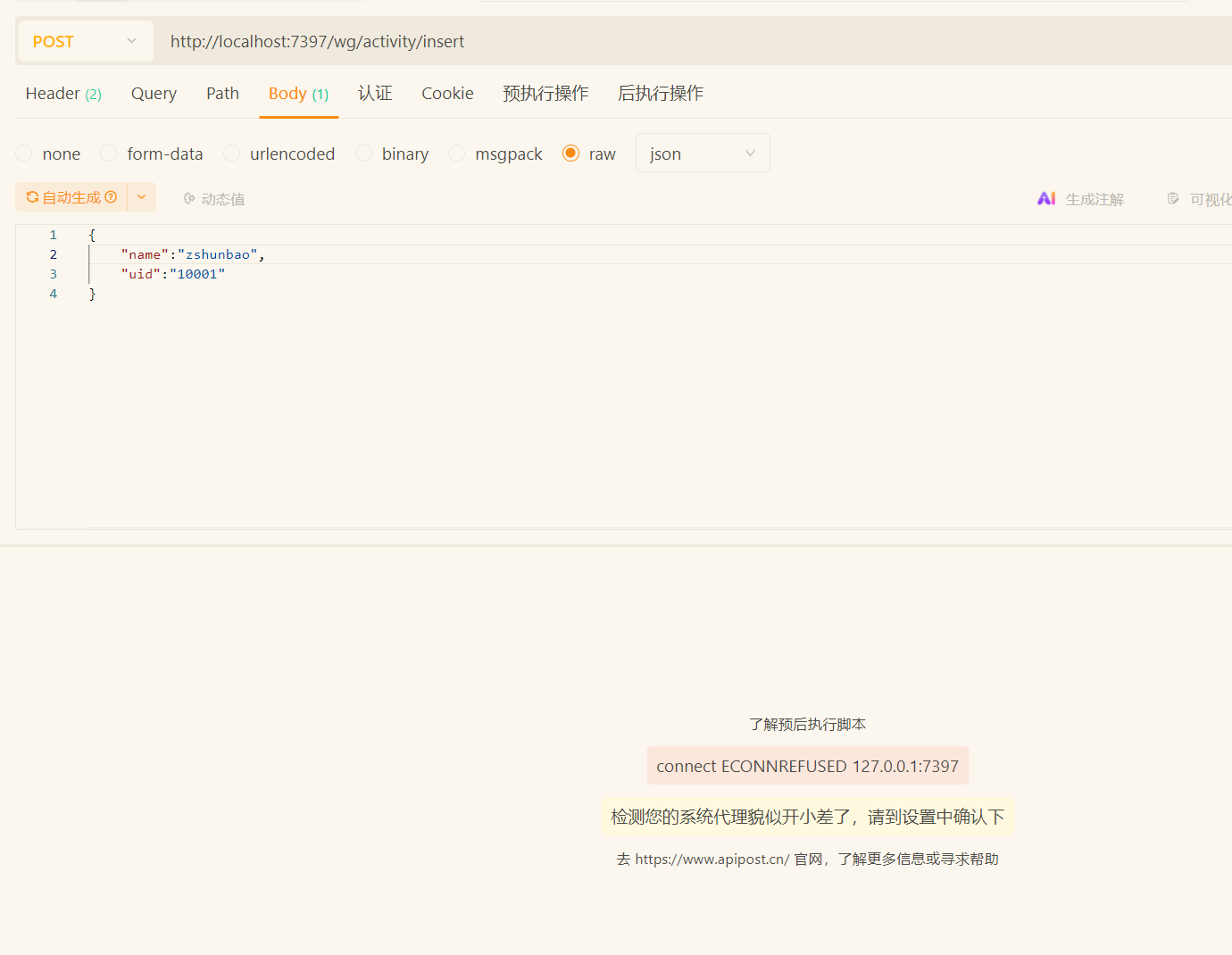 在做API网关项目的第17长得测试的时候,在apipost报错