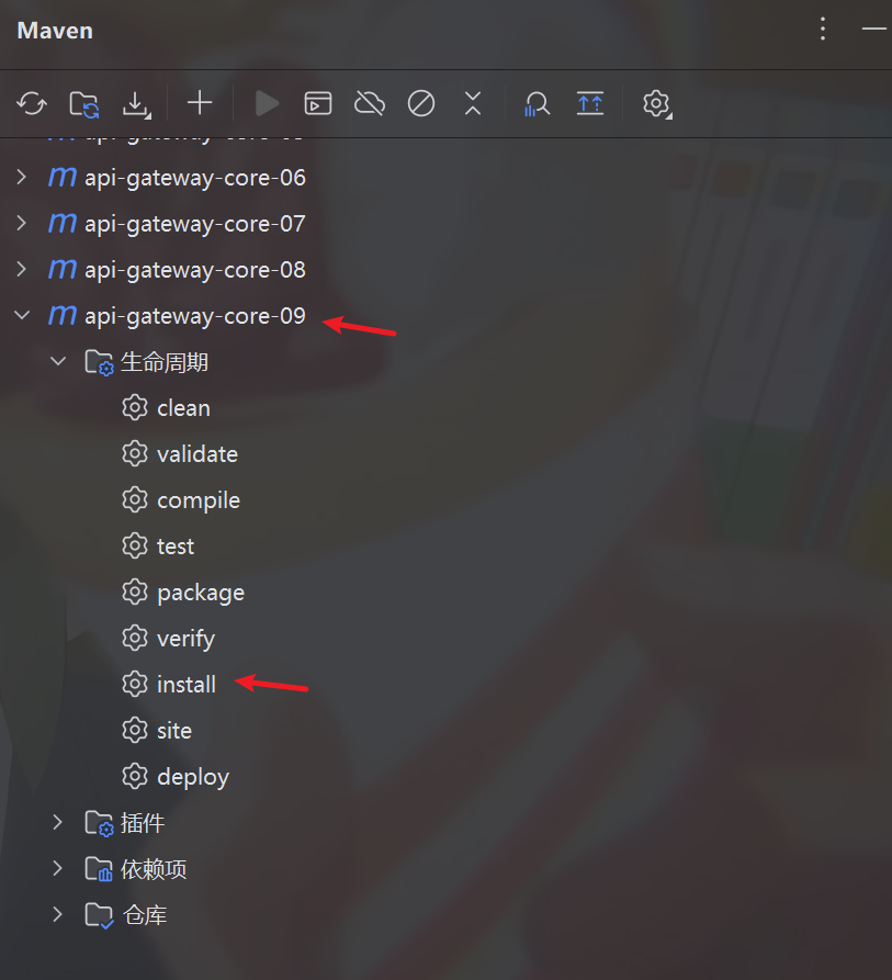 mavean点击install打包后,我们就可以在api-gateway-assist中引入