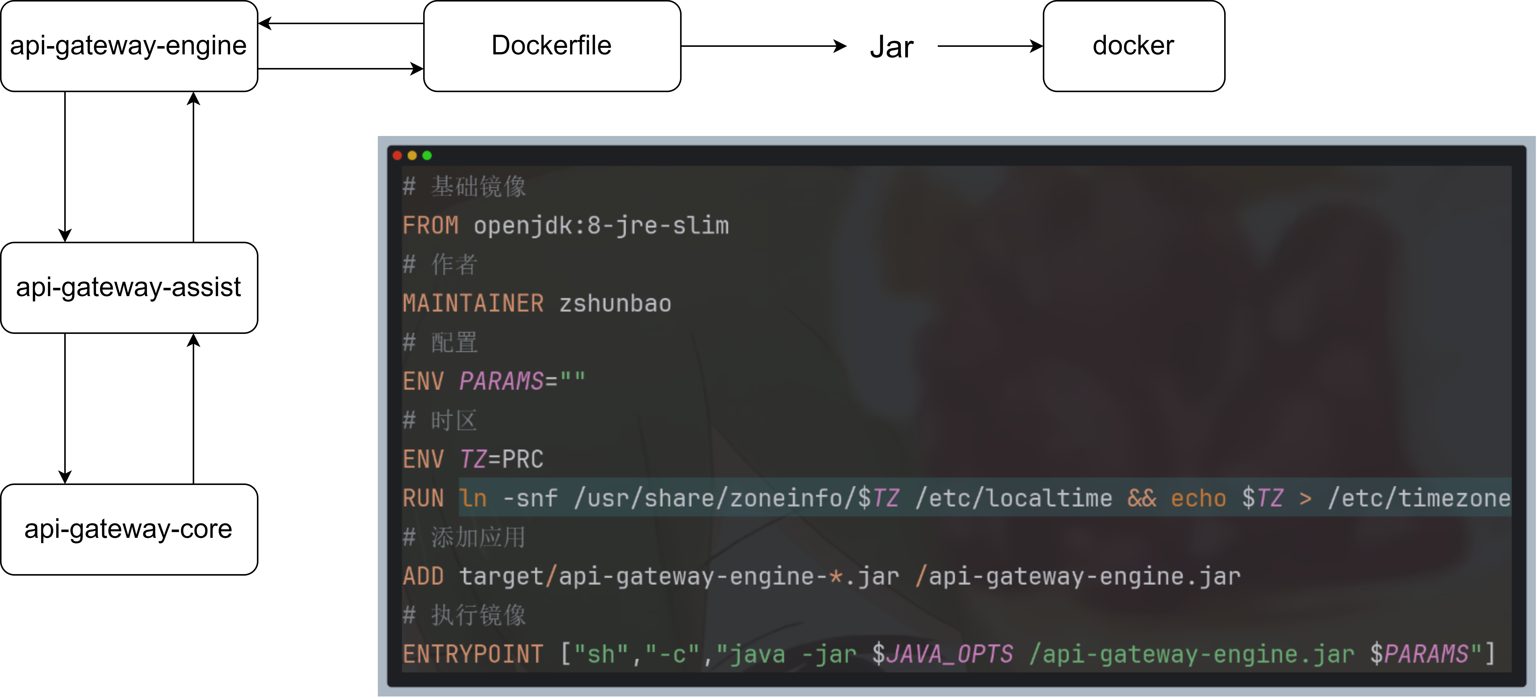 对于将api-gateway-engine部署到docker上,首先我们需要创建api-gateway-engine的镜像包。