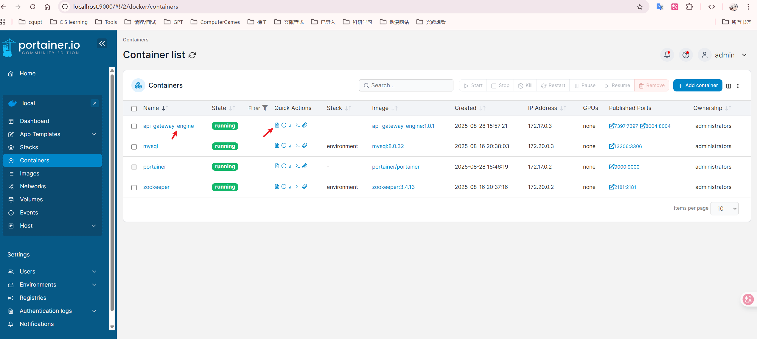 设置时间限制,所以容器在第一次部署启动可能会报超时错误,这里只需要在Portainer中重启几次容器即可(我们这里重启了3次)