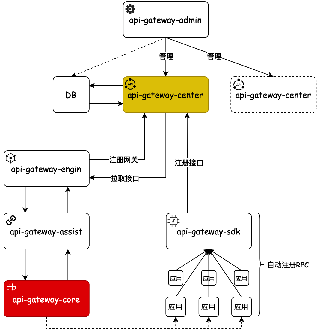 在上一章中,我们已经完成了api-gateway-core,api-gateway-assist,api-gateway-engin这一套有关网关服务的组合,在其中,向网关注册中心注册网关服务,并拉取相关的配置。但是网关注册中心在之前我我们定义到,它急需要关联网关服务,也需要关联RPC服务。现在网关相关的服务一套已经基本完成,那么接下来我们就要完成有关RPC服务的。如上图,我们在设计API网关项目的时候,对于RPC服务,我们是希望,它引入api-gateway-sdk组件,一旦服务启动,就将RPC服务的相关信息注册到网关注册中心api-gateway-center(其实这样来看的话,api-gateway-sdk是有些类似于一个starter的)。无论是网关注册中心的功能,还是网关算力模块的使用,都需要使用到RPC服务端的相关信息。而这部分信息就是网关注册中心有关RPC服务的三章表的相关属性字段信息。如下图