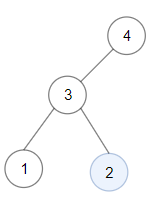 输入:root = [4,3,null,1,2] 输出:2 解释:键值为 2 的单节点子树是和最大的二叉搜索树。