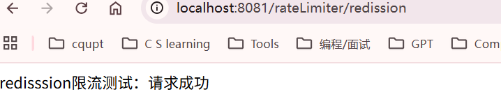 return "redisssion限流测试:请求成功";