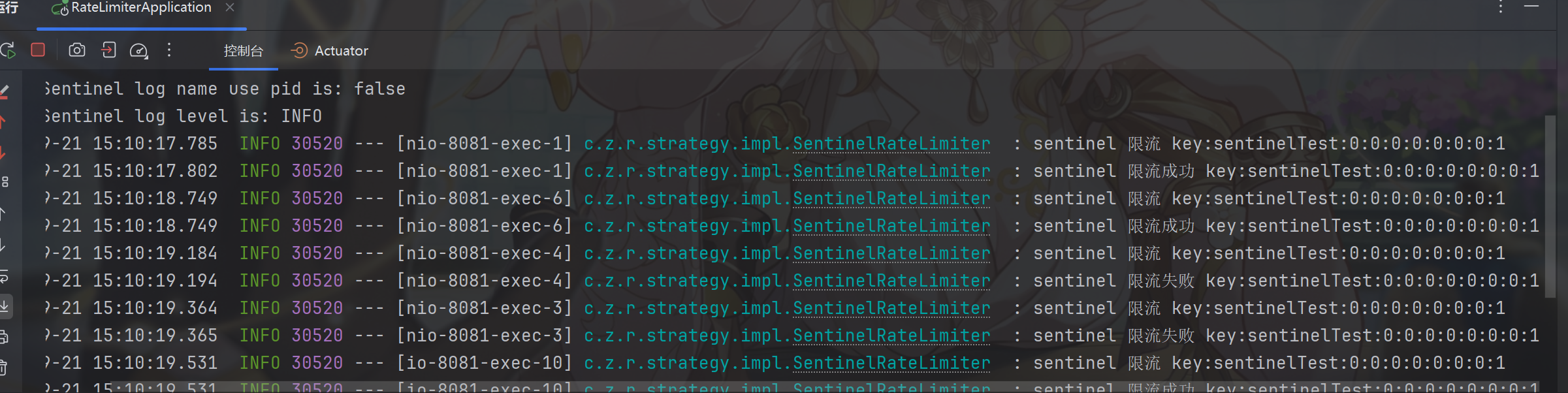 @RateLimiter(strategy = RateLimiteConstants.SENTINEL, limit = 2, period = 2, fallbackMethod = "fallbackMethod")