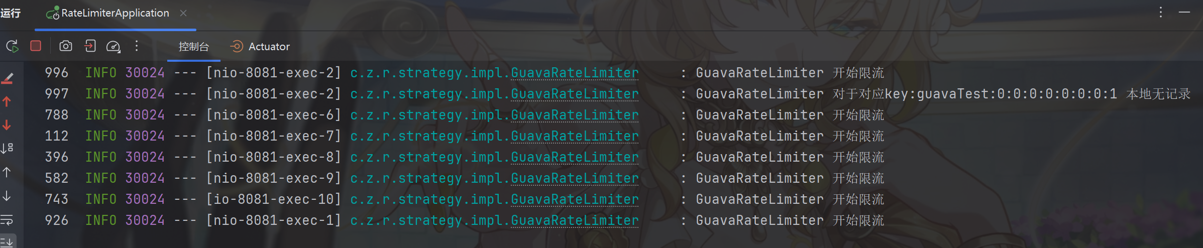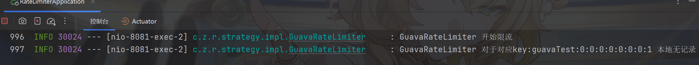 @RateLimiter(strategy = RateLimiteConstants.LOCAL_GUAVA, limit = 5, period = 60, fallbackMethod = "fallbackMethod")
