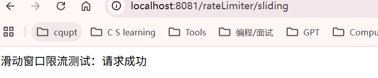 return "滑动窗口限流测试:请求成功";