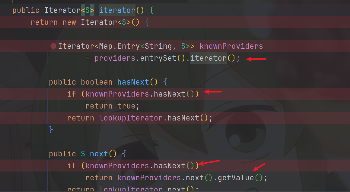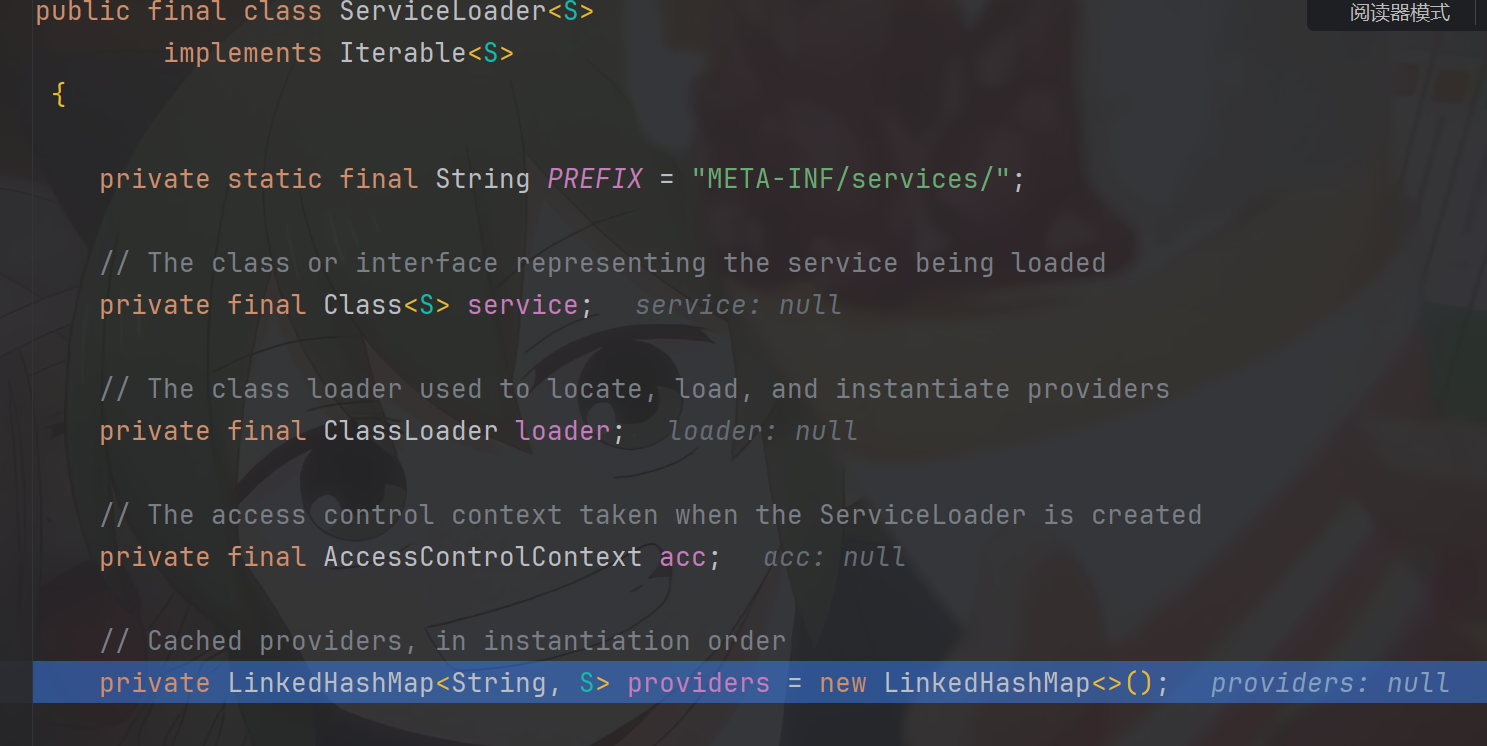 这个链表的作用就是的在我们第一次调用相关的ServiceLoader.load并通过匿名迭代器遍历后,在后续的重复创建一个匿名迭代器去后去获取接口的服务对象时,可以直接从LinkedHashMap链表缓存里读取即可,无需再次去解析接口对应的配置文件,起到了查询优化的作用。