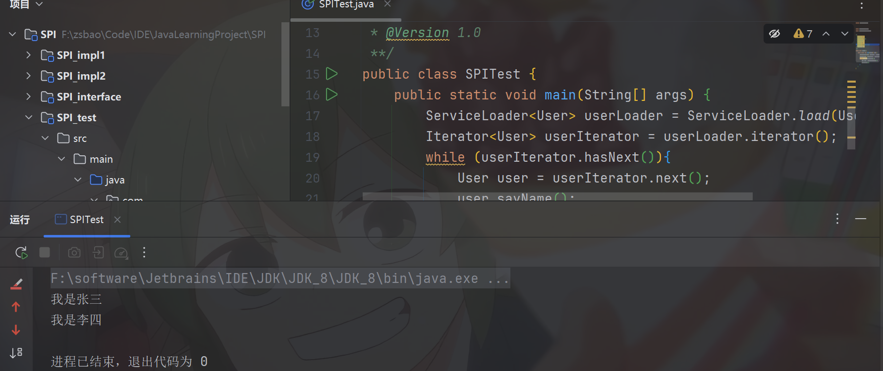 现在我们就可以基于Java SPI动态加载到接口的实现类并执行了,我们写一个简单的测试模块做验证。我们新建一个测试模块,把他当作服务调用方