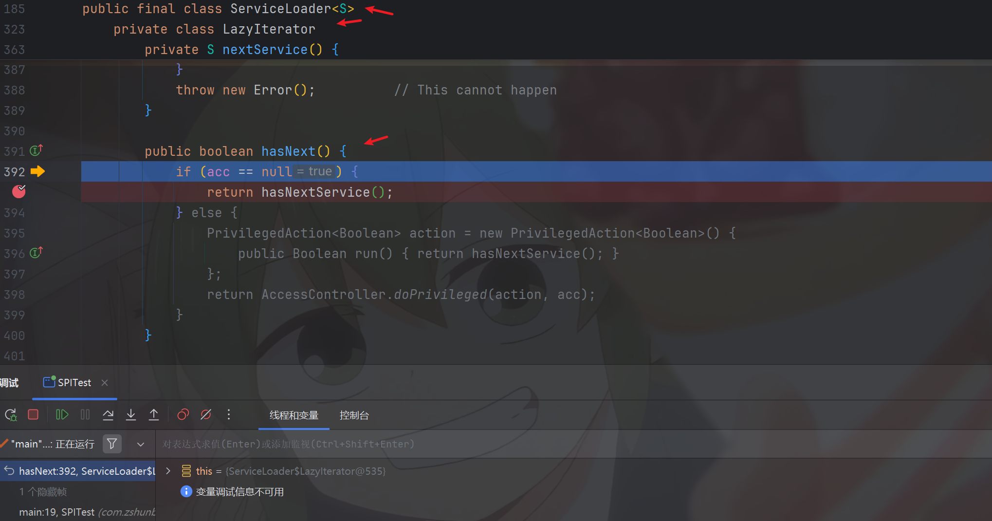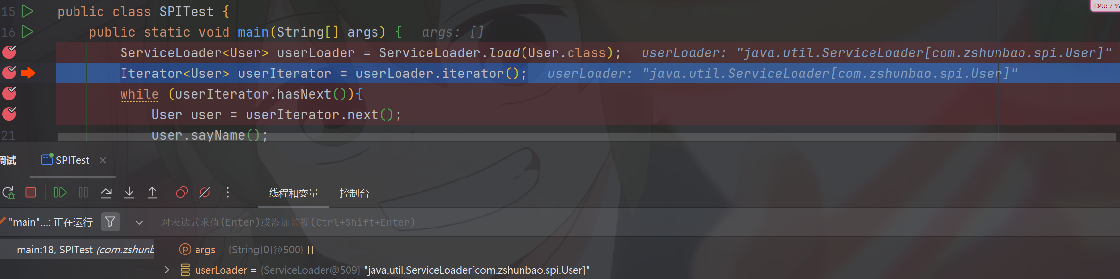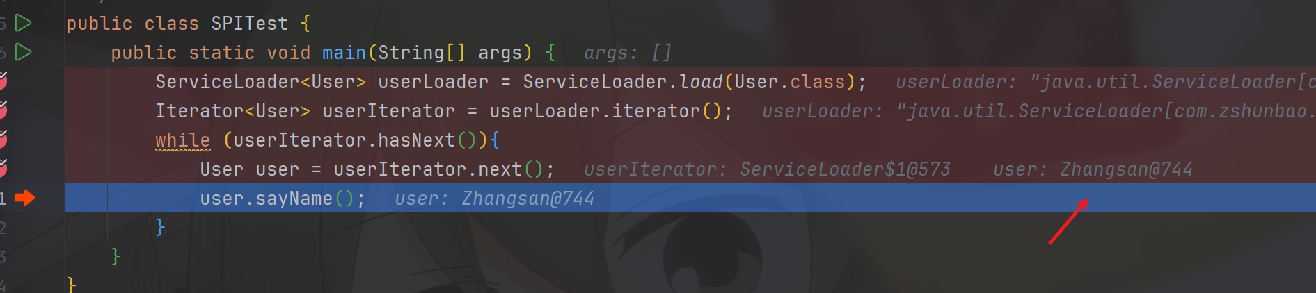 的逻辑中去,在其中我们发现我们会在这个里面将扫描META-INF/services/com.zshunbao.spi.User扫描出来,并加载到对应的文件资源(注意fullName的拼接方式,它是用的PREFIX + service.getName(),其中PREFIX是写死的META-INF/services,而service是我们定义的接口的class,它在getName时用的是接口的源根路径)