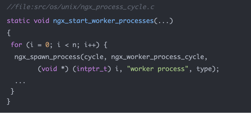 然后master进程还会调用如下函数,根据配置建立worker进程,会创建多个