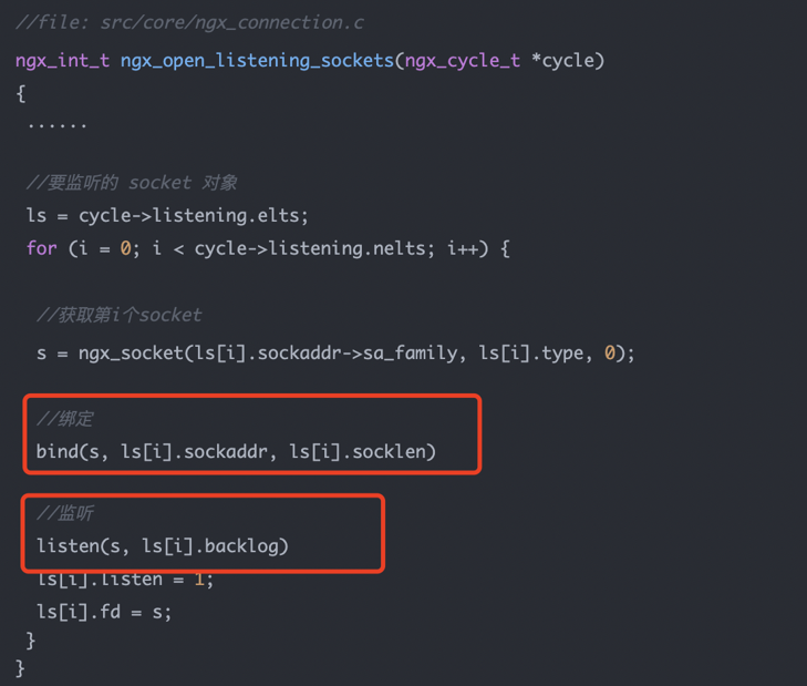 接着遍历所有listen的socket,并设置回调函数,执行epoll_ctl
