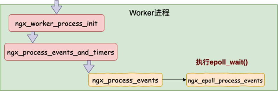 worker初始化完成后,会调用ngx_process_events_and_timers,最终会在这个过程中调用epoll_wait执行